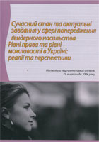 Сучасний стан та актуальні завдання у сфері попередження ґендерного насильства. Рівні права та рівні можливості в Україні: реалії та перспективи. Матеріали парламентських слухань 21 листопада 2006 року |